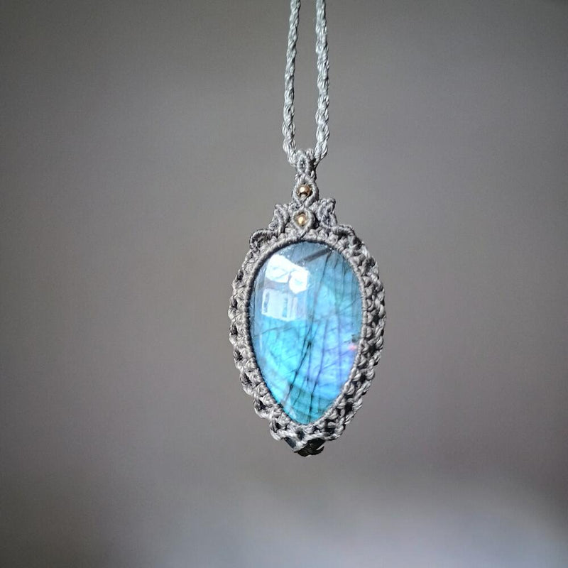 Thank you very much. I'm absolutely thrilled with my beautiful pendant and lovely free heart and tea . The labradorite is wonderful, really radiant colours. The macrame work is so well crafted and neat, fantastic. Everything was packaged fabulously with love and care and posted the next day . Thoroughly recommended by me ❤️