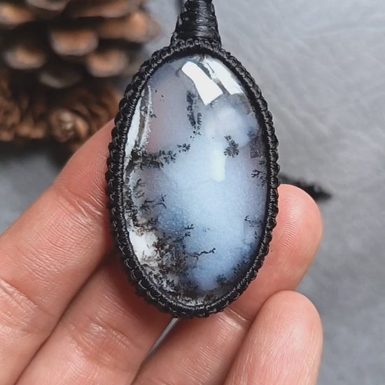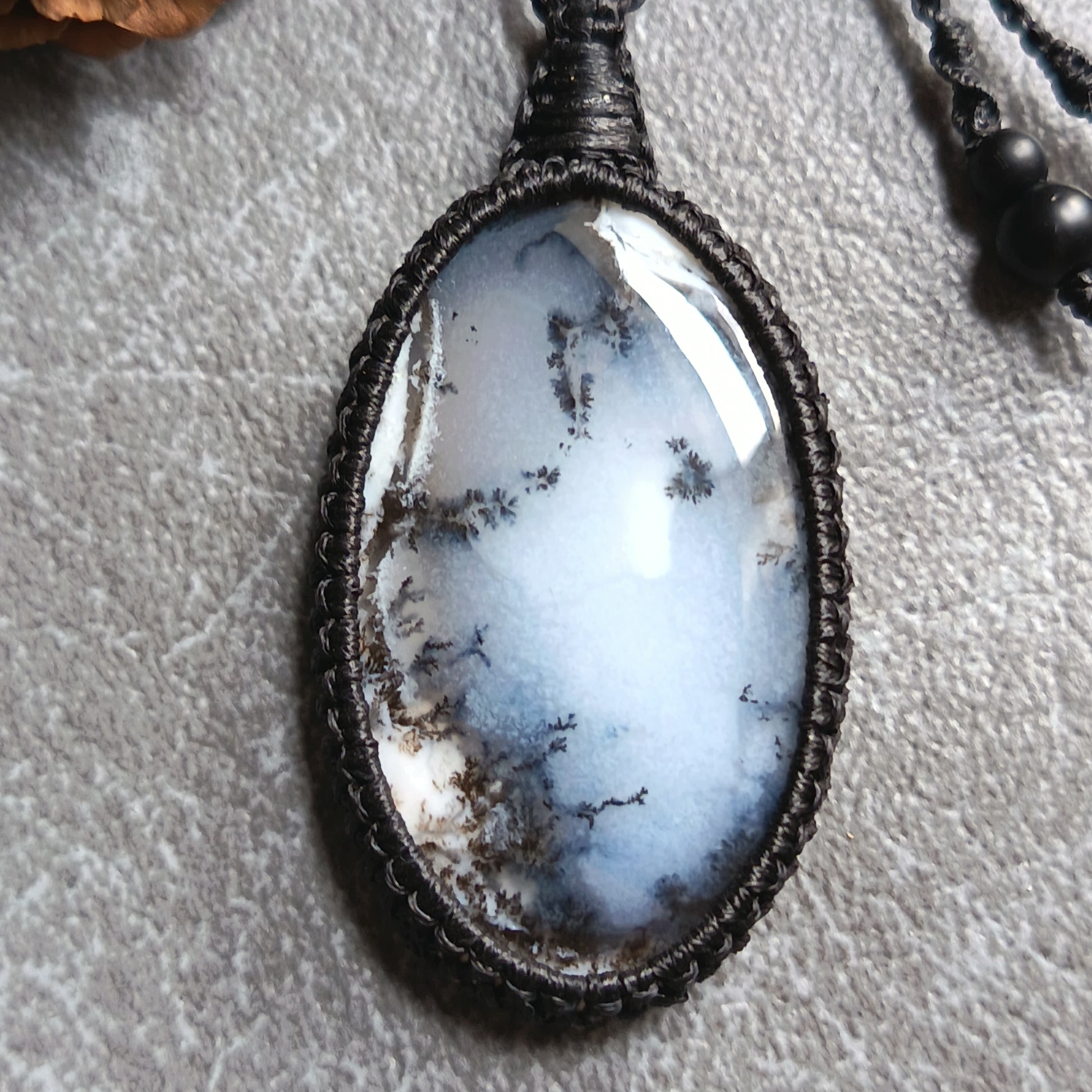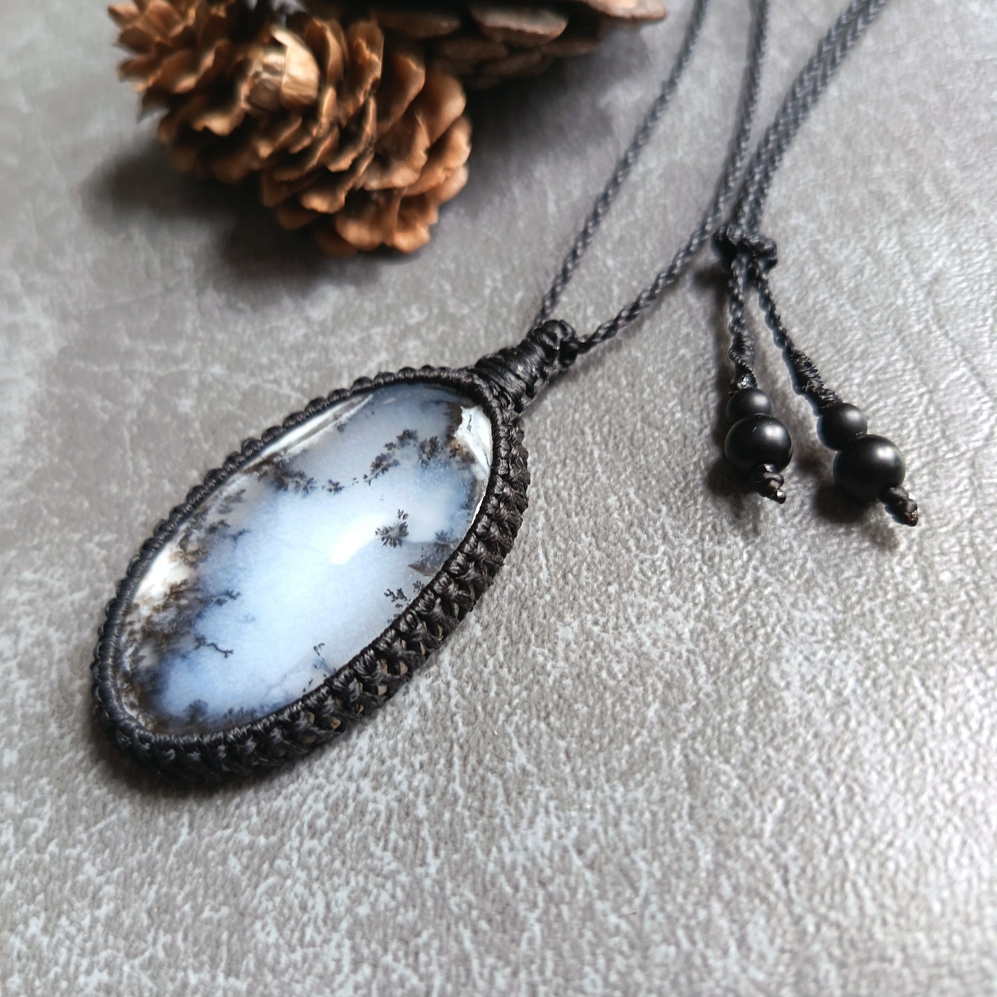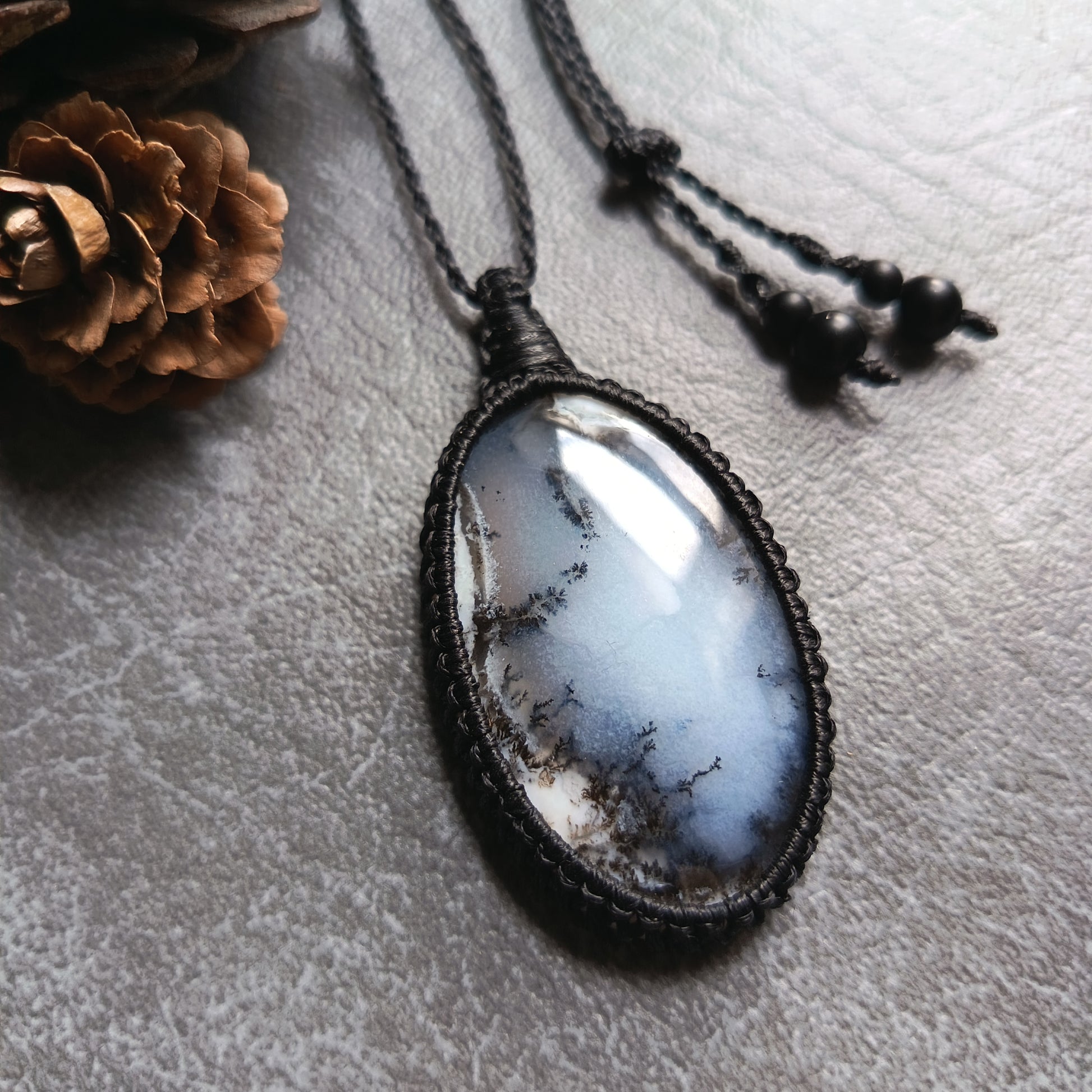 Dendritic Opal Macrame Necklace | Pendant size approx 5.8 cm