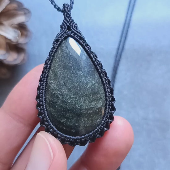 Golden Sheen Obsidian Macrame Necklace | Pendant size approx 5.4 cm