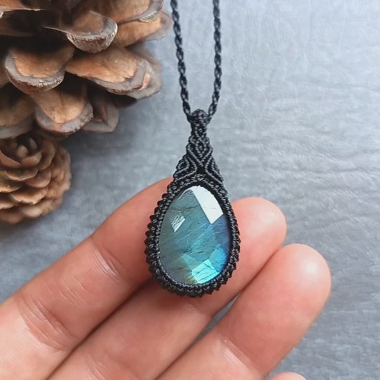 Labradorite Macrame Necklace | Pendant size approx 3.9 cm