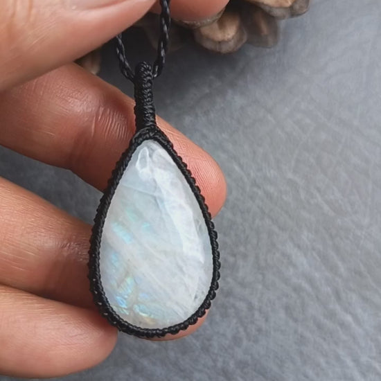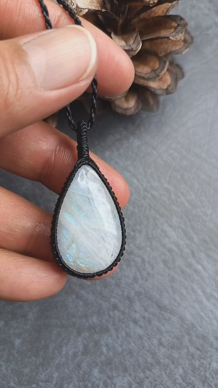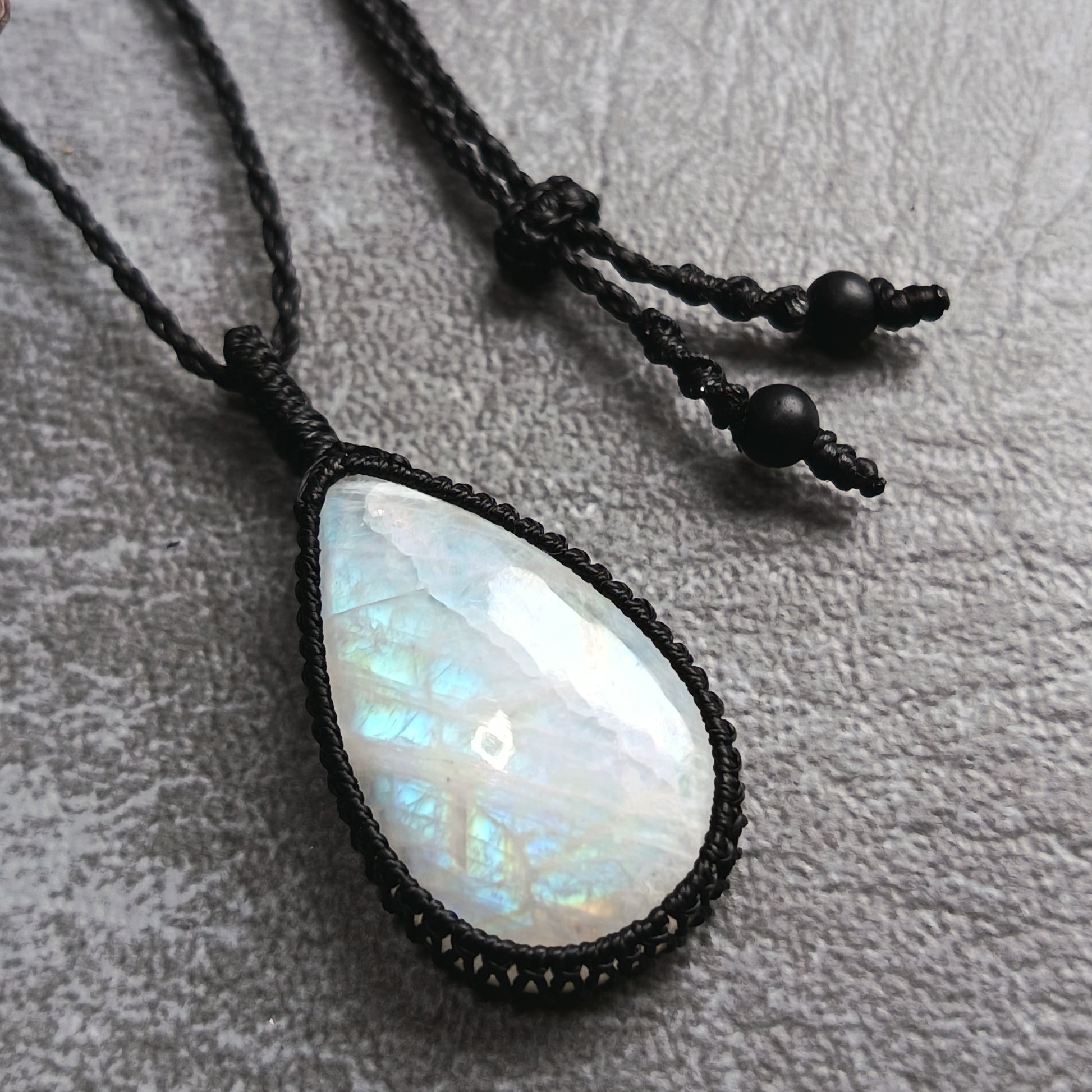 Moonstone Macrame Necklace | Pendant size approx 4.4 cm