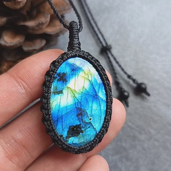 Labradorite Macrame Necklace | Pendant size approx 5.2 cm