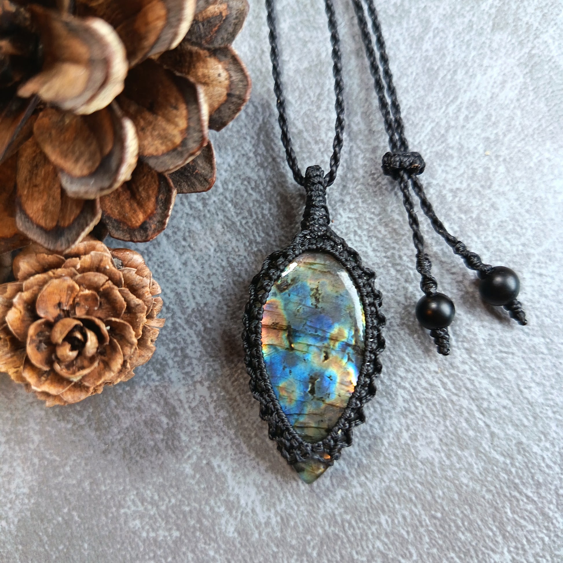 Labradorite Macrame Necklace | Pendant size approx 5 cm