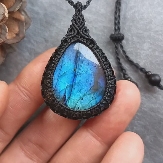 Labradorite Macrame Necklace | Pendant size approx 5.7 cm
