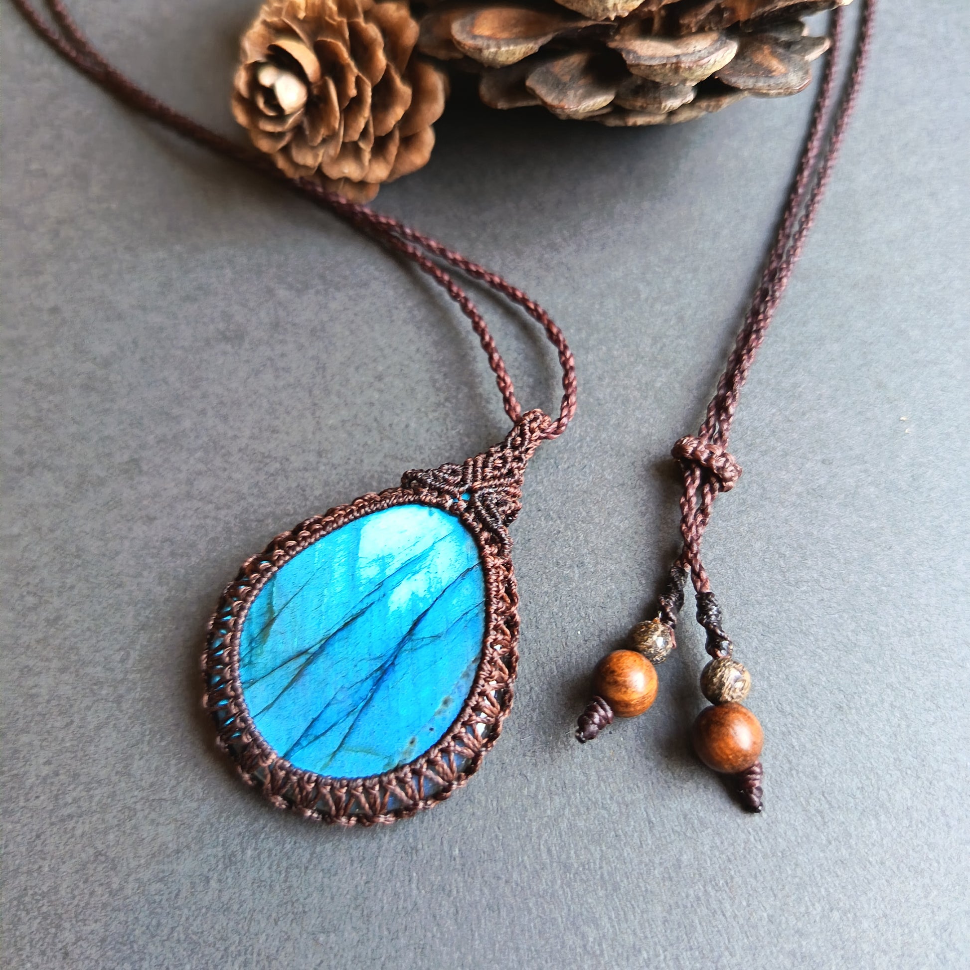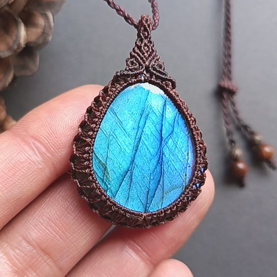 Labradorite Macrame Necklace | Pendant size approx 4.9 cm