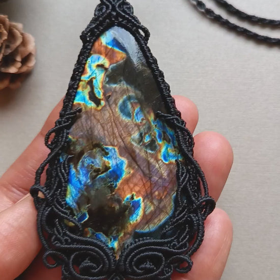 Kranok Plaew | Labradorite Macrame Necklace | Freehand Design | Pendant size approx 9.5 cm