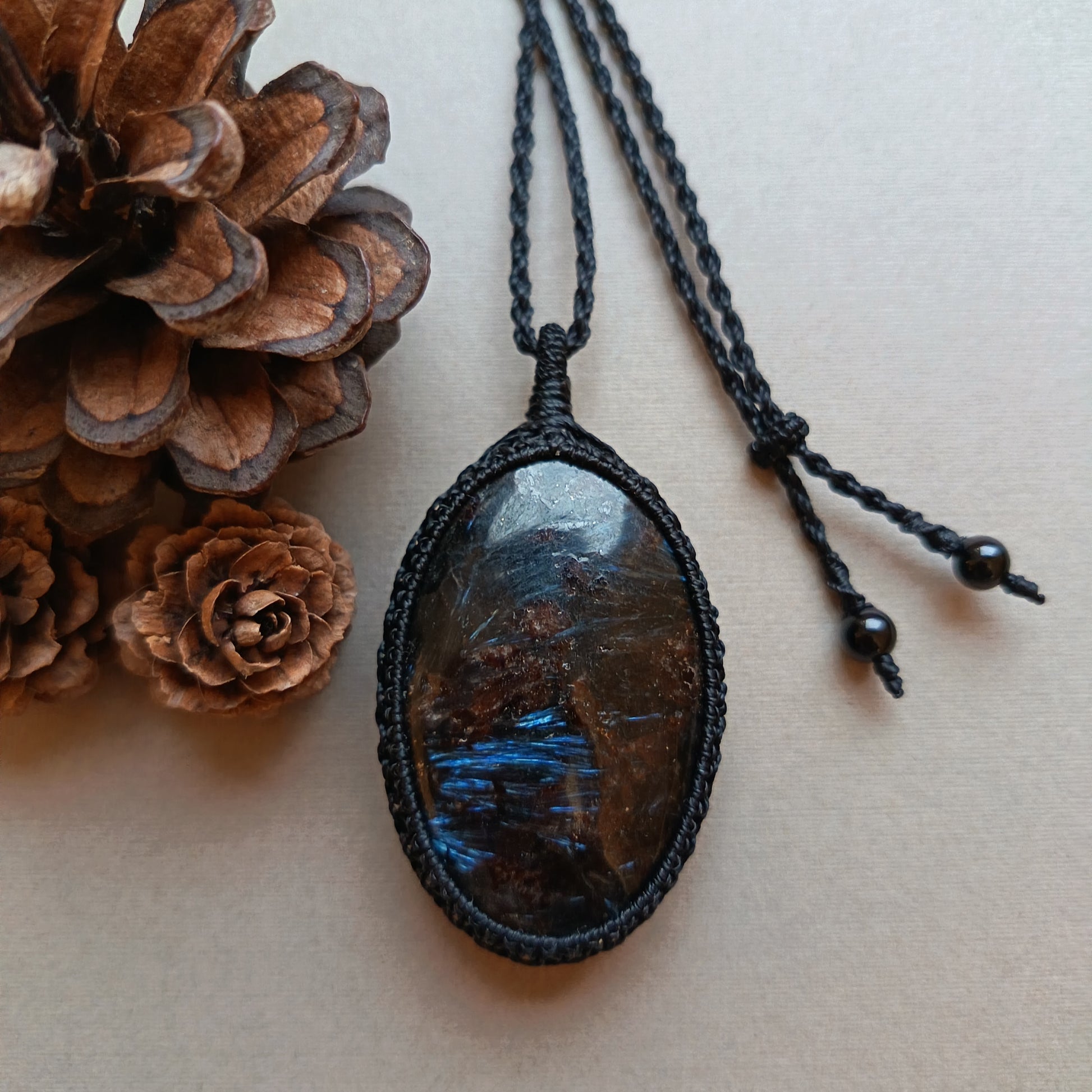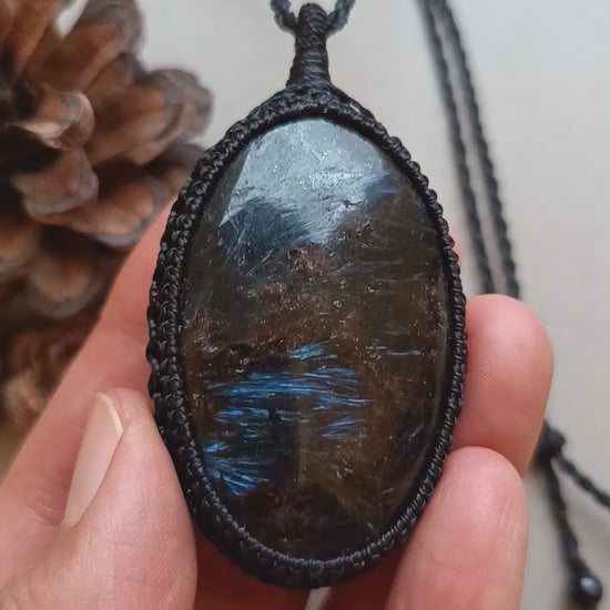 Arfvedsonite Macrame Necklace | Pendant size approx 7 cm - SOLD