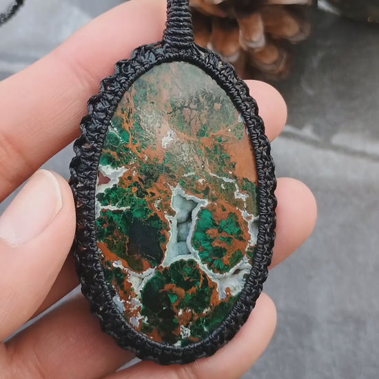 Australian Chrysocolla Macrame Necklace | Pendant size approx 7.7 cm