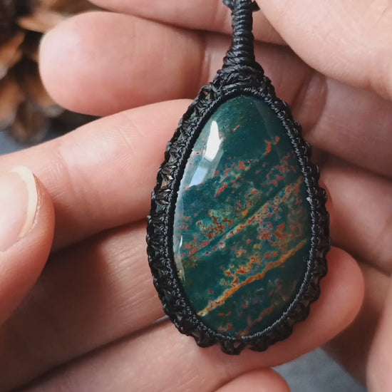 Bloodstone Macrame Necklace | Pendant size approx 5.3 cm