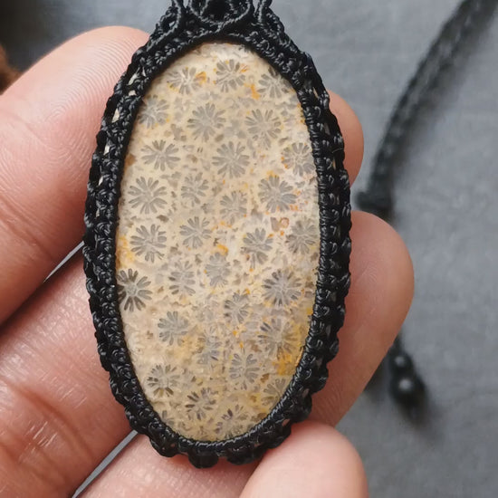 Fossil Coral Macrame Necklace | Pendant size approx 5.3 cm