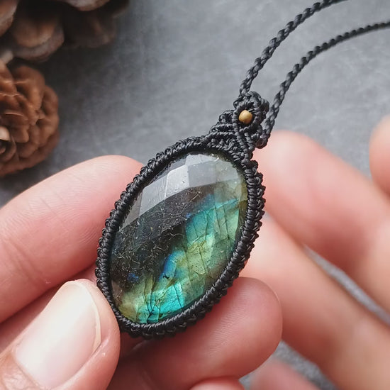 Labradorite Macrame Necklace | Pendant size approx 4.3 cm