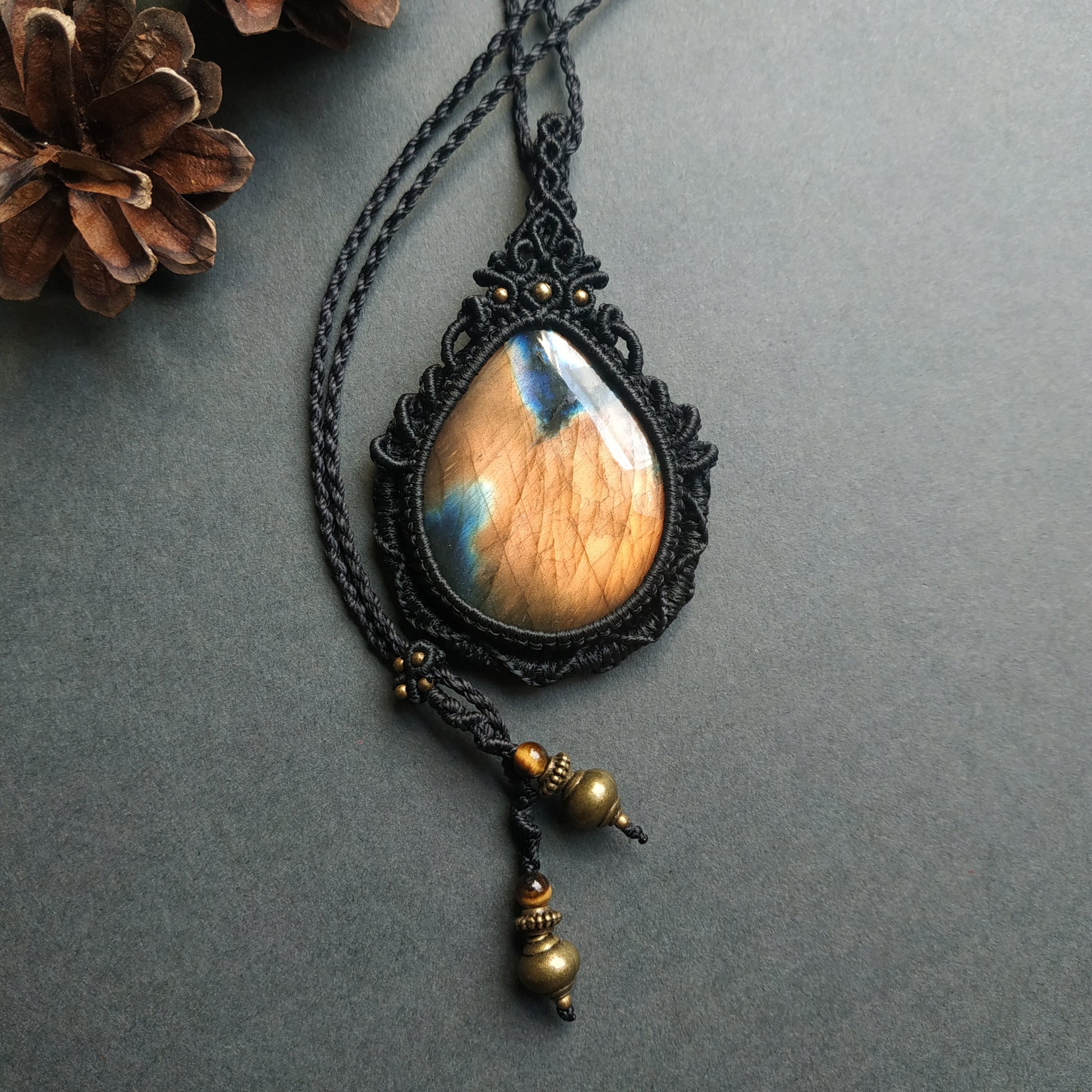 Labradorite Macrame Necklace - Freehand Design - SOLD