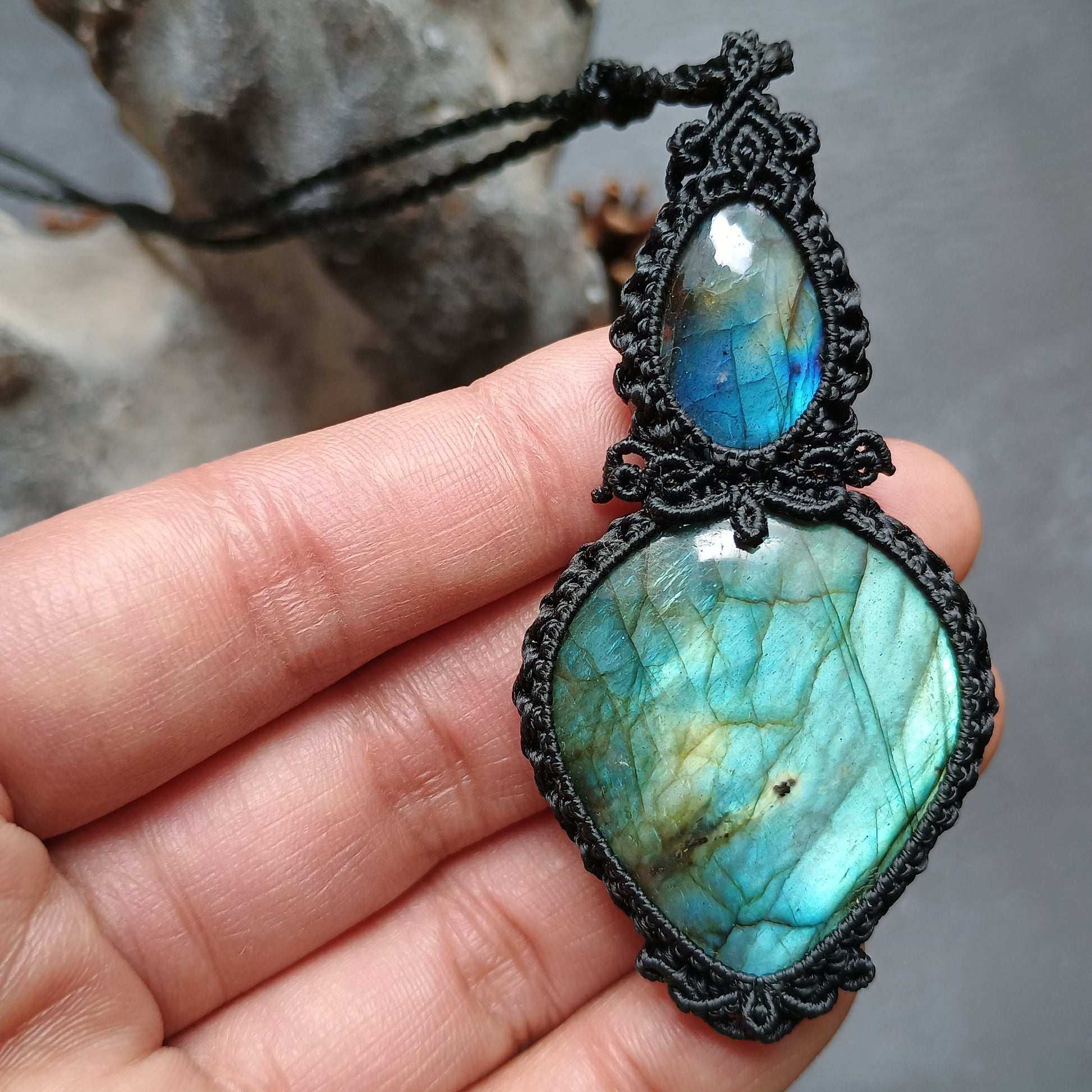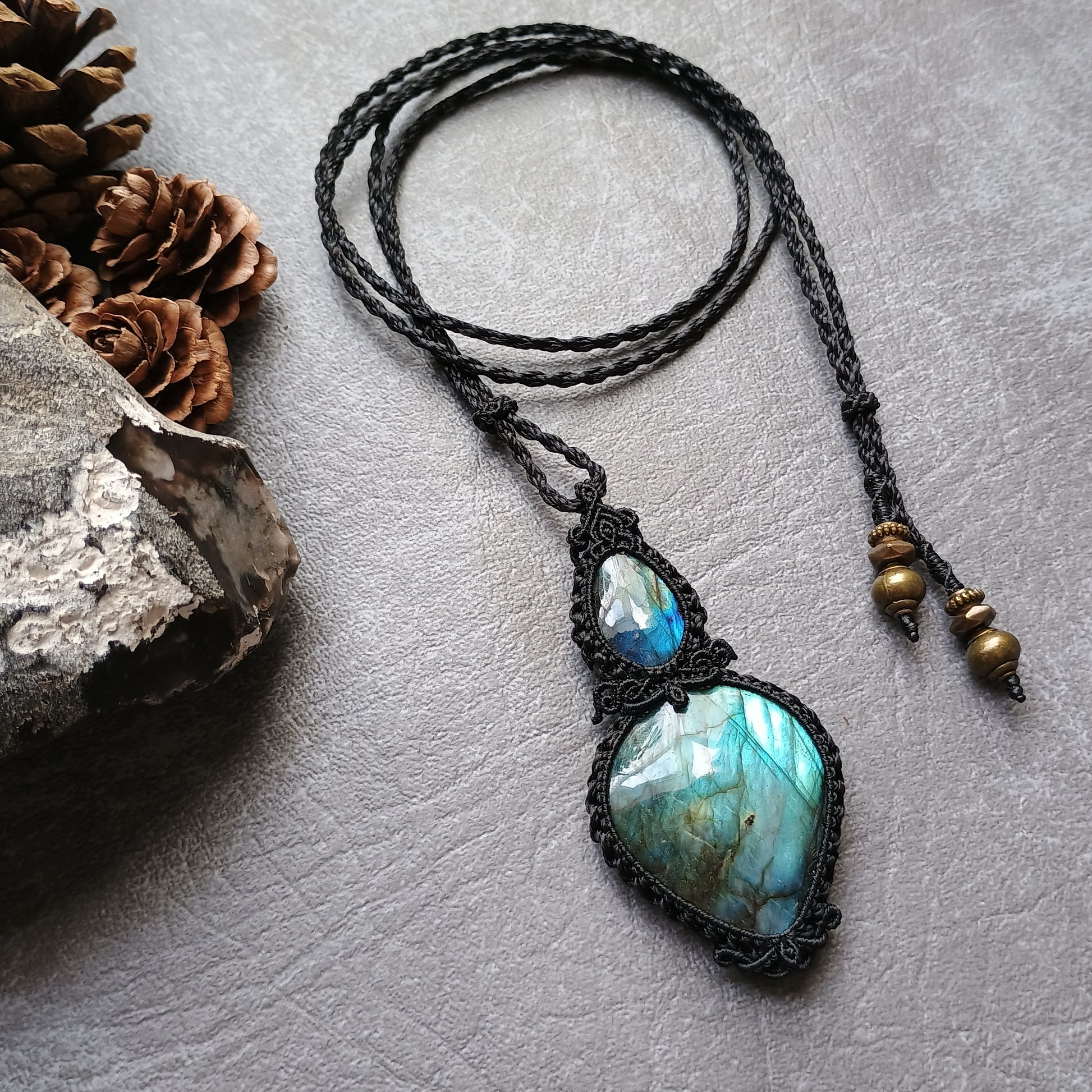Labradorite Macrame Necklace - Freehand Design - SOLD