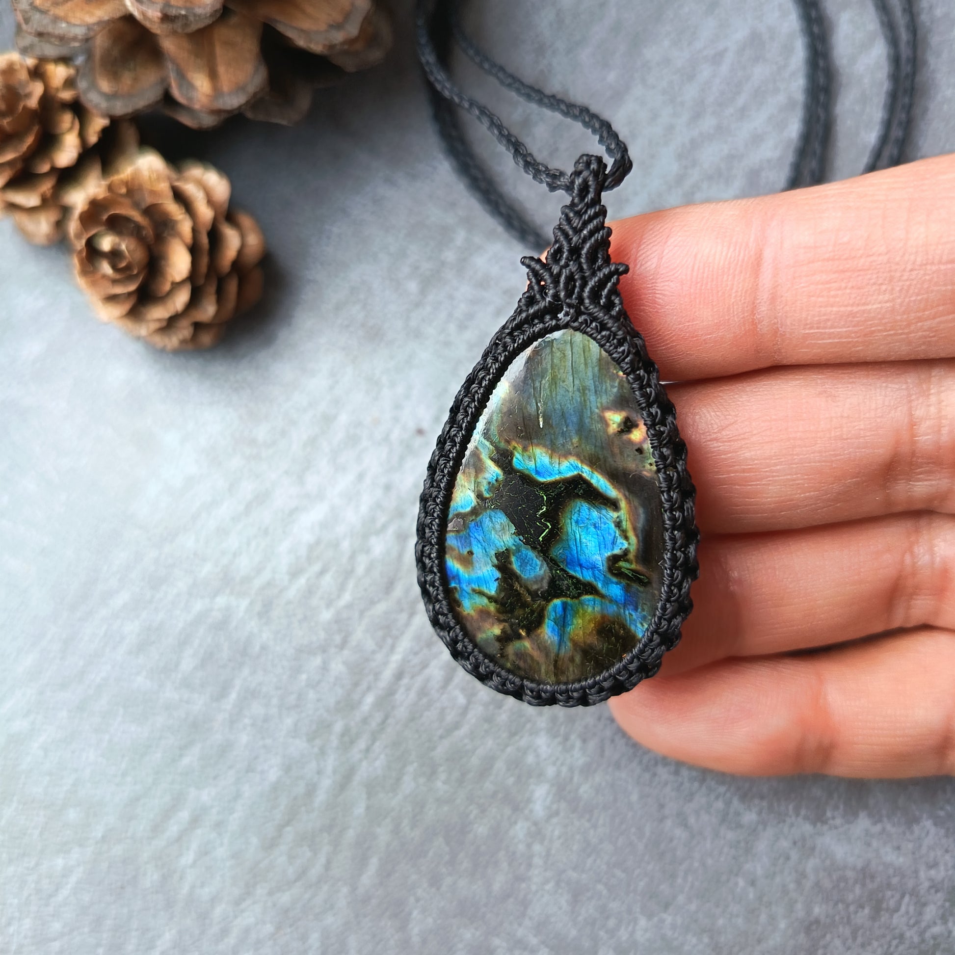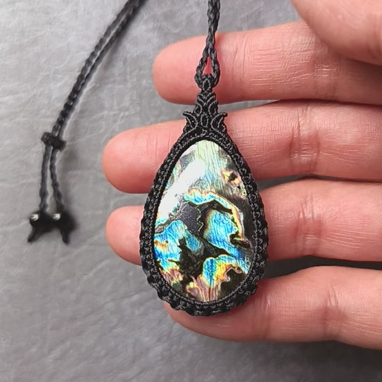 Spectrolite Labradorite Macrame Necklacen | Pendant size approx 5.5 cm