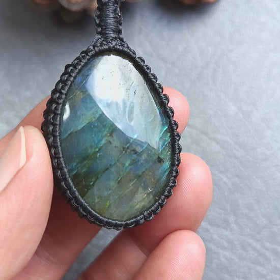 Labradorite Macrame Necklace | Pendant size approx 5.3 cm