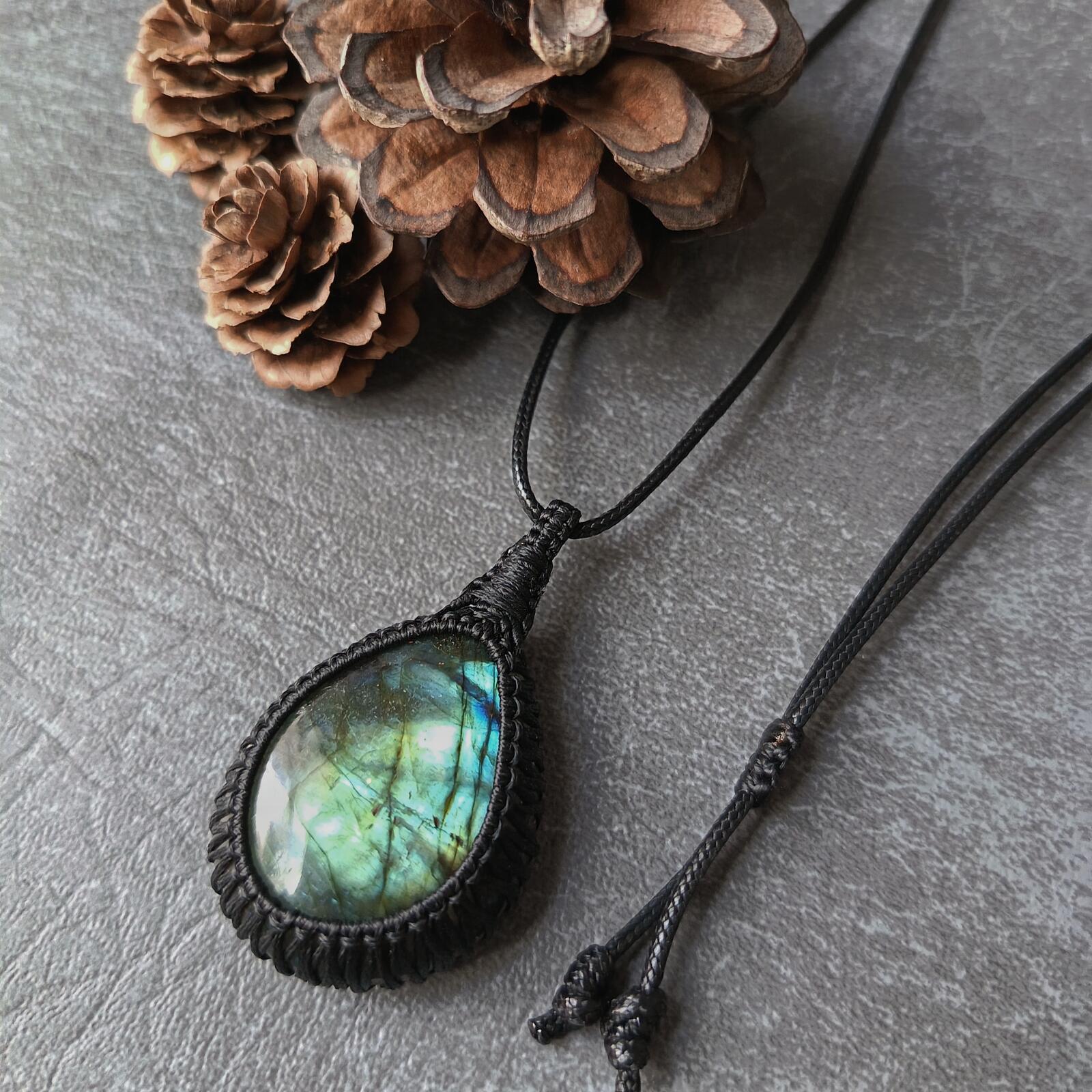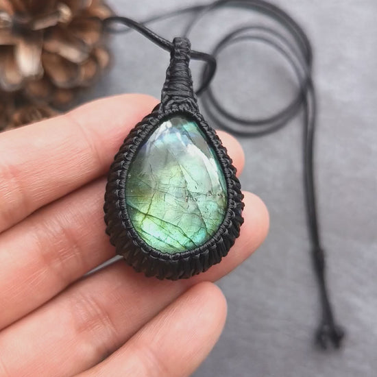 Labradorite Macrame Necklace | Pendant size approx 5.5 cm