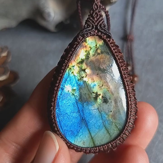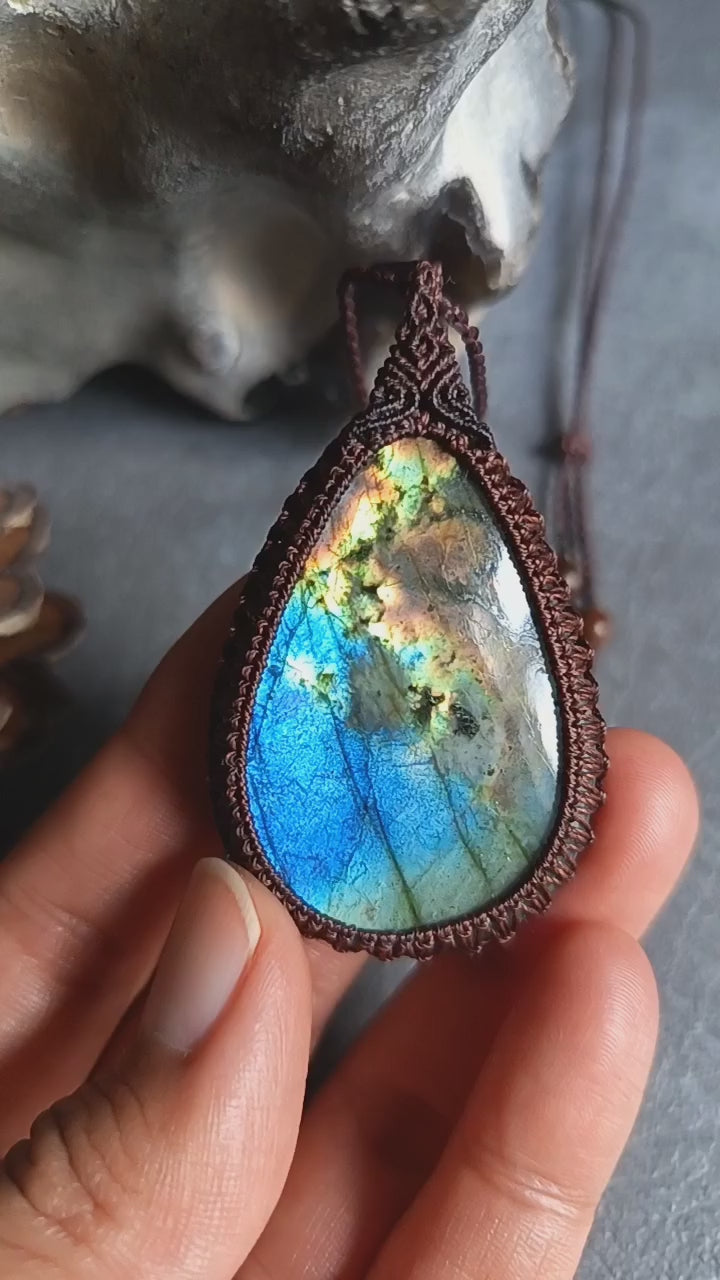 Labradorite Macrame Necklace | Pendant size approx 6.2 cm