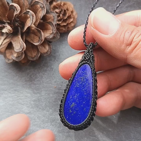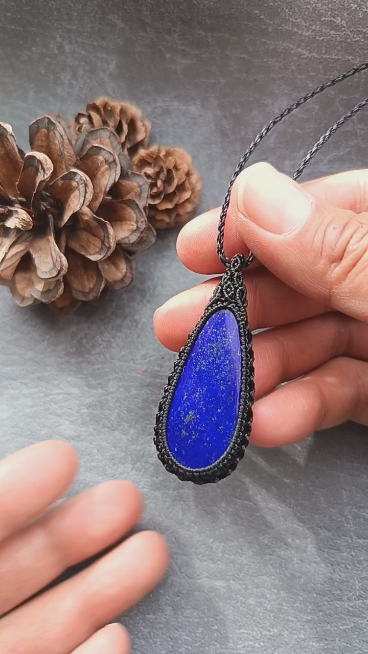 Lapis Lazuli Macrame Necklace | Pendant size approx 5.5 cm