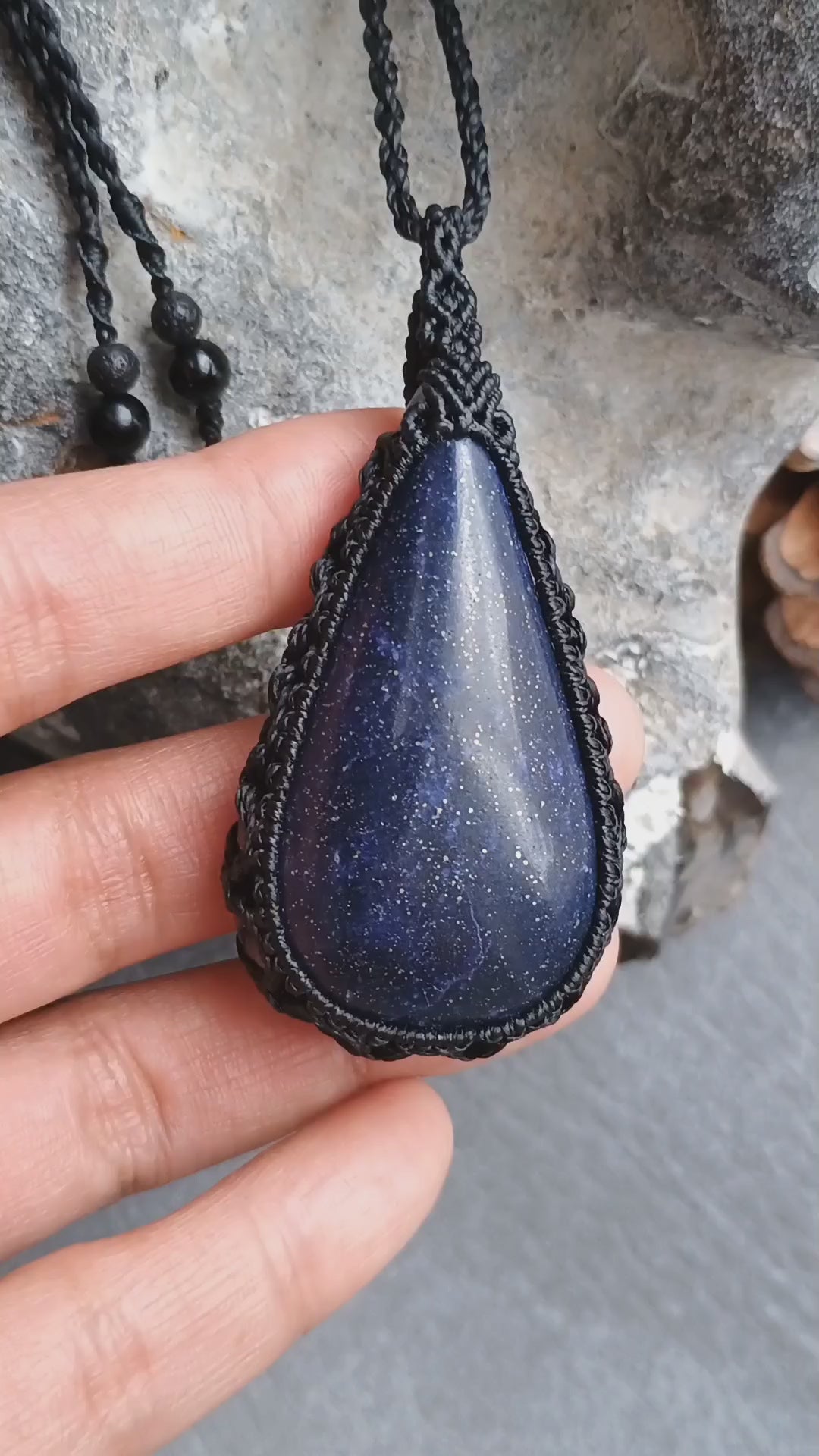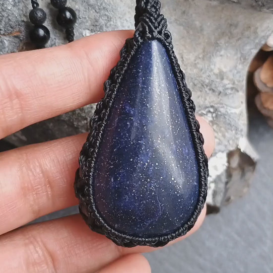 Lapis Lazuli Macrame Necklace | Pendant size approx 7 cm