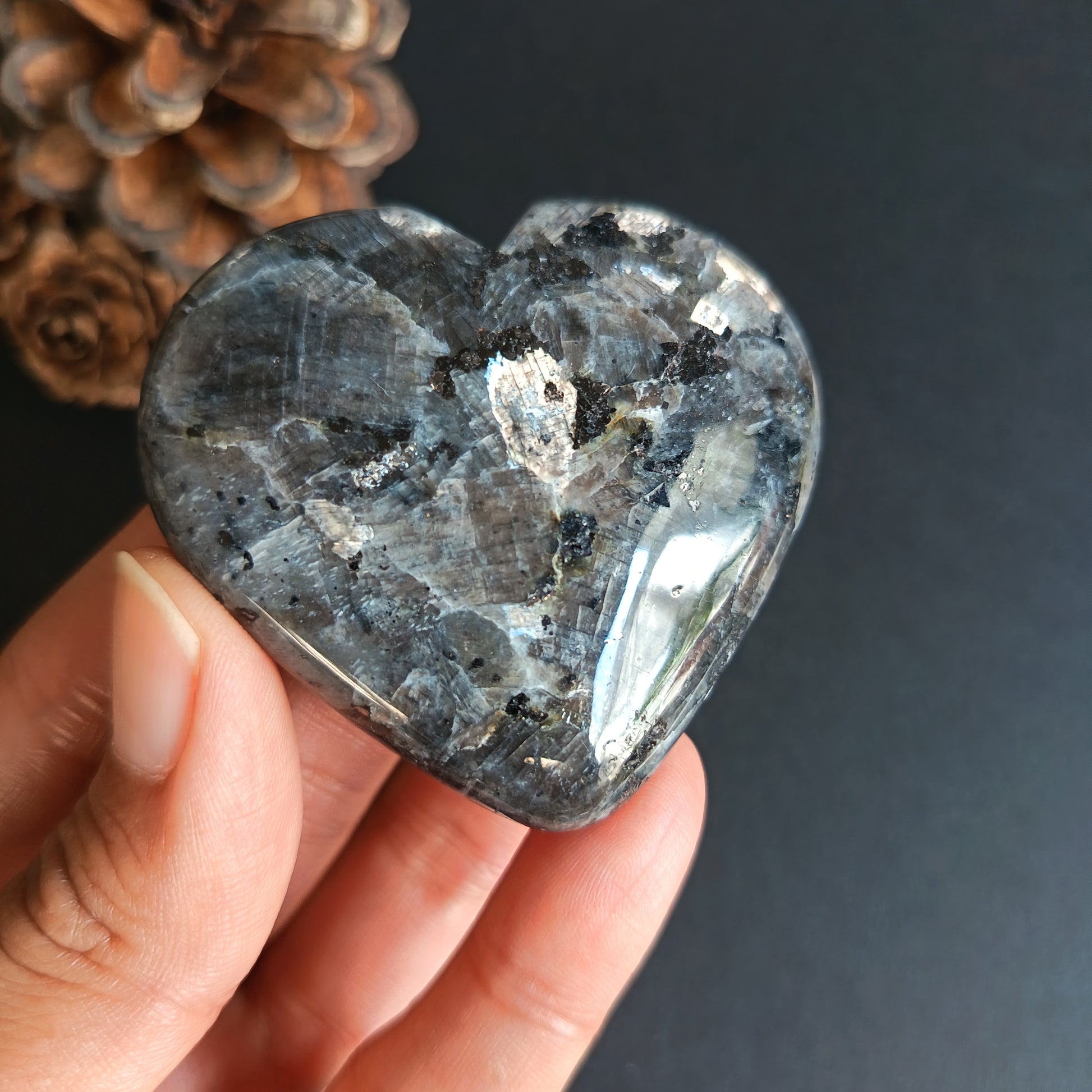 Larvikite, Heart Shape, Palm Stone, 52x58x18 mm, 78.3g [PALM-R06]