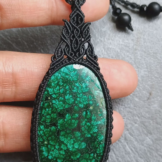 Malachite Macrame Necklace | Pendant size approx 7 cm