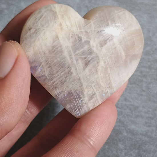Moonstone Heart shape, Palm Stone, 46x48x21 mm, 64.9g [PALM-K02]