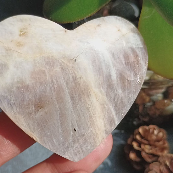 Moonstone Heart Shape, Palm Stone, 51x60x18mm, 83.7g [PALM-E03]