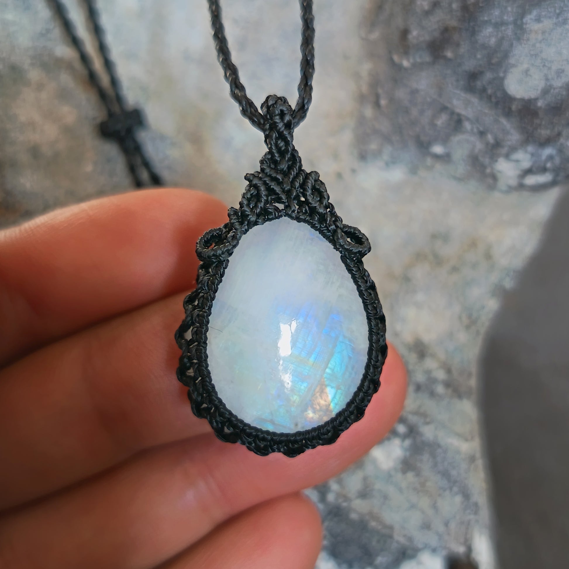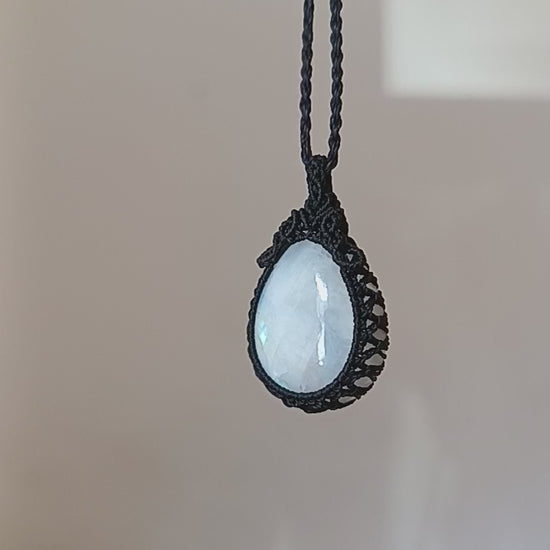 Moonstone Macrame Necklace | Pendant size approx 3.6 cm