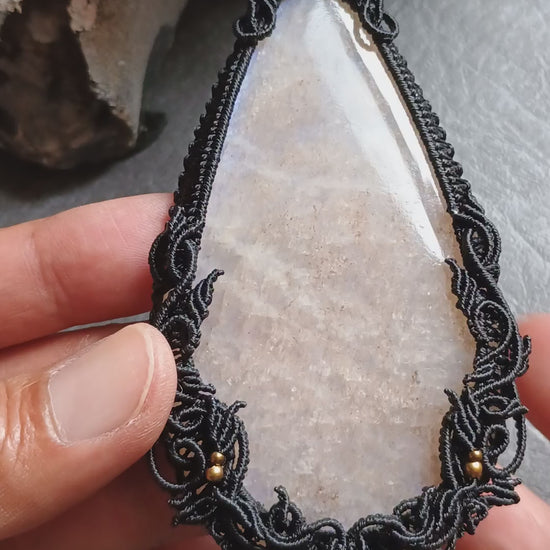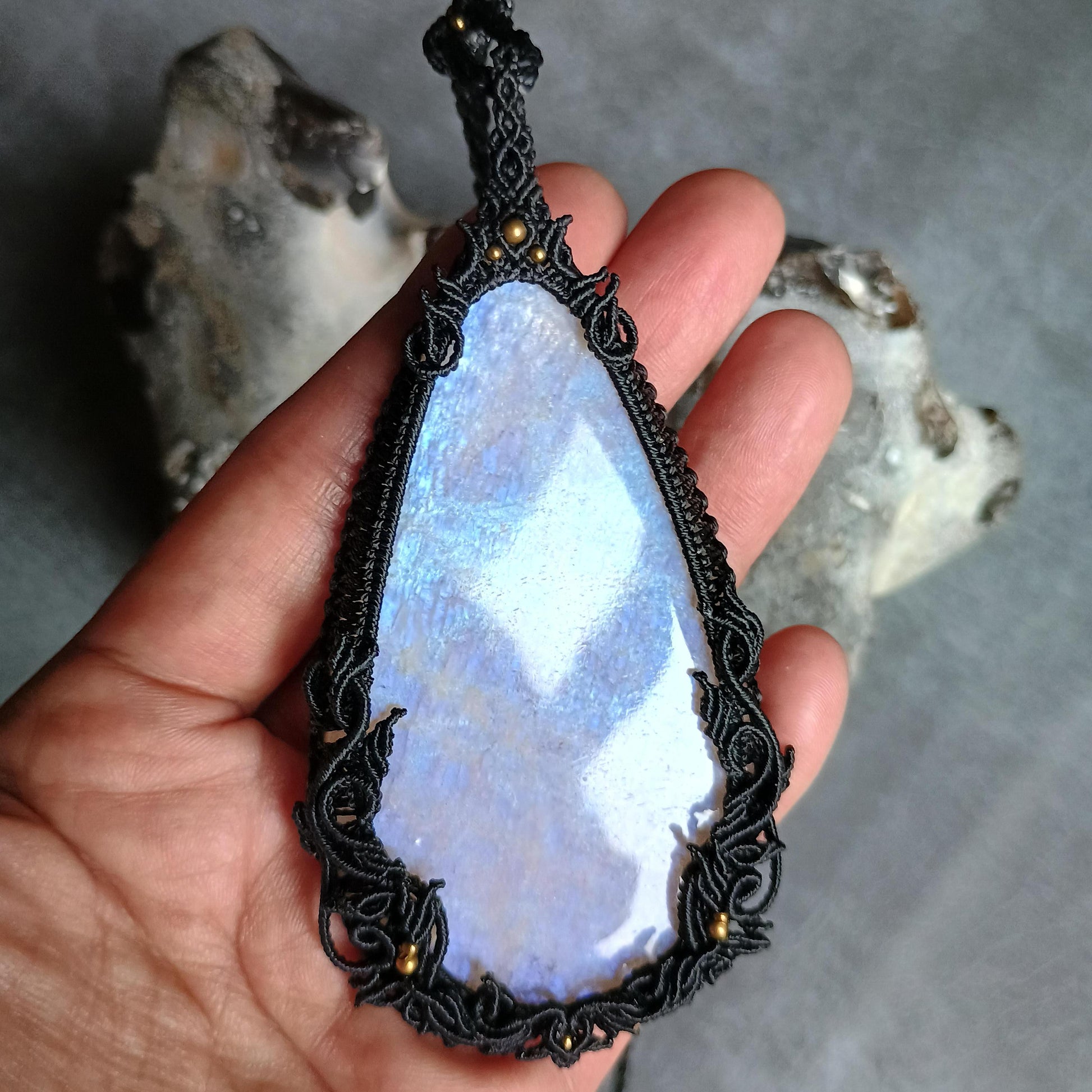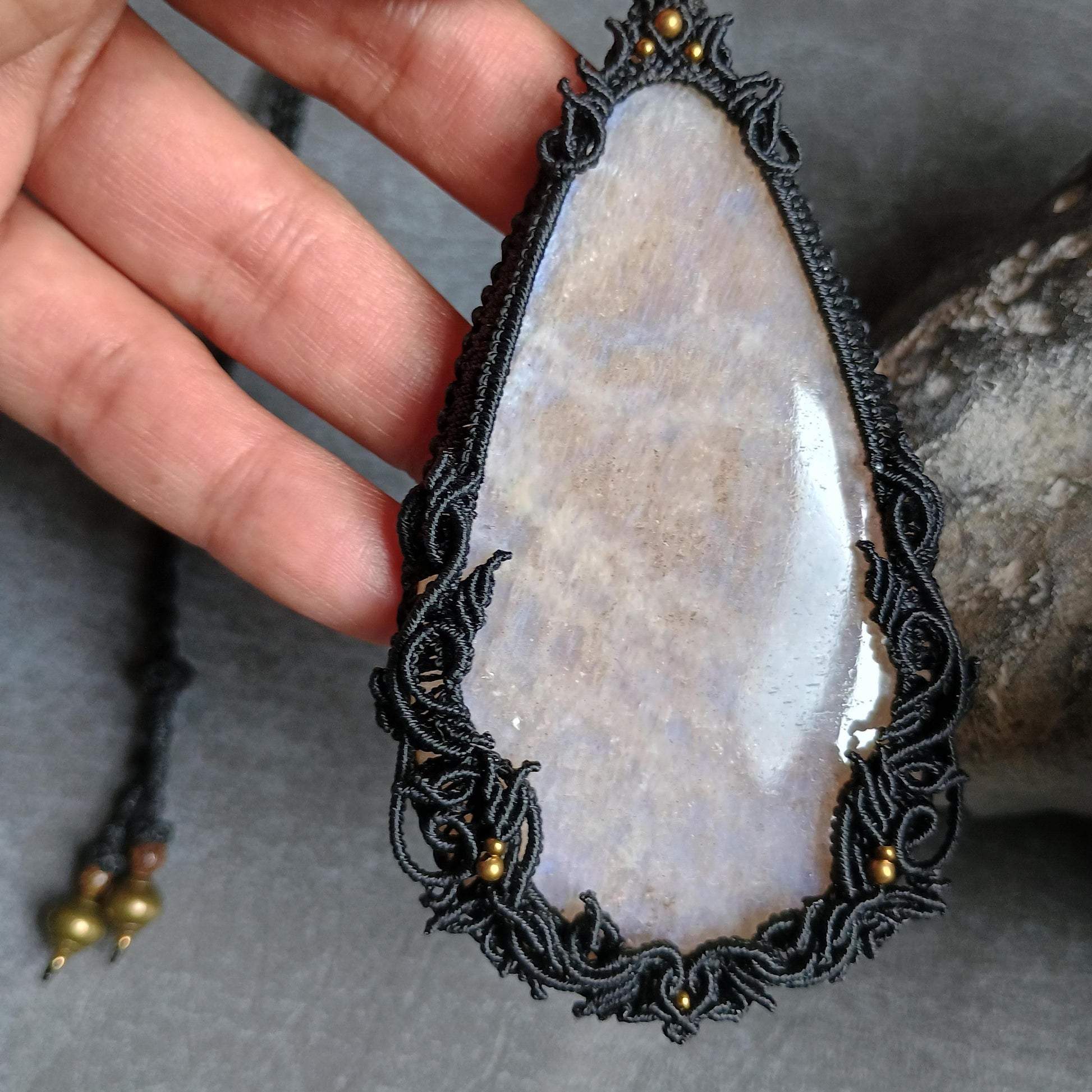 Moonstone Macrame Necklace | Freehand Design | Pendant size approx 10.5 cm