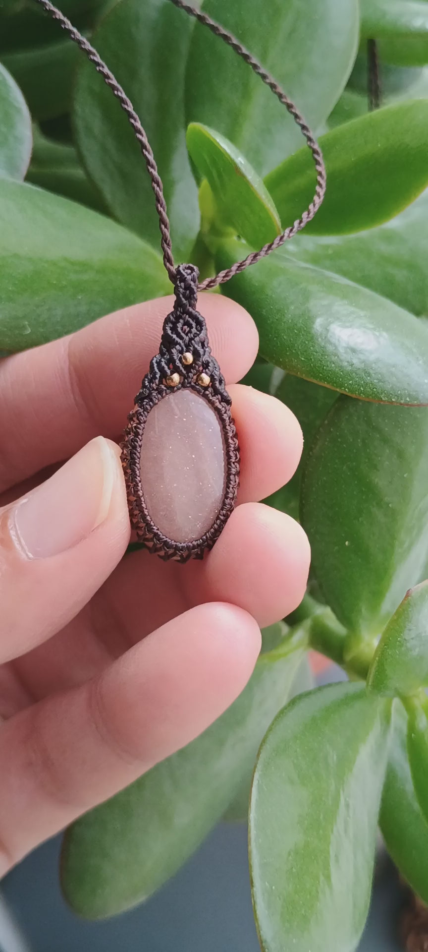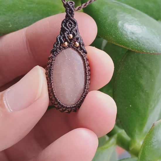 Peach Moonstone Macrame Necklace | Pendant size approx 3.7 cm - SOLD