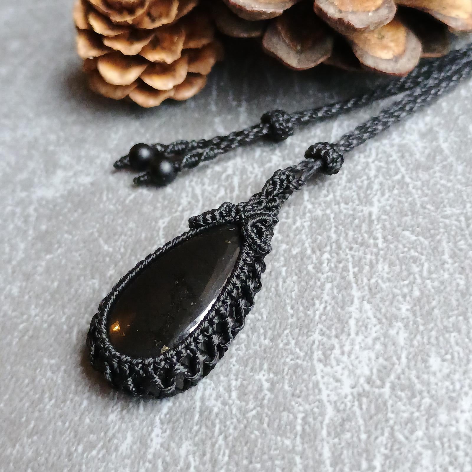 Shungite Macrame Necklace | Pendant size approx 4 cm - SOLD