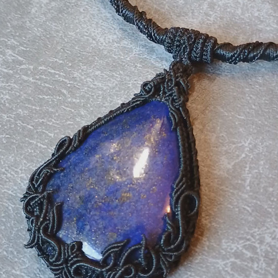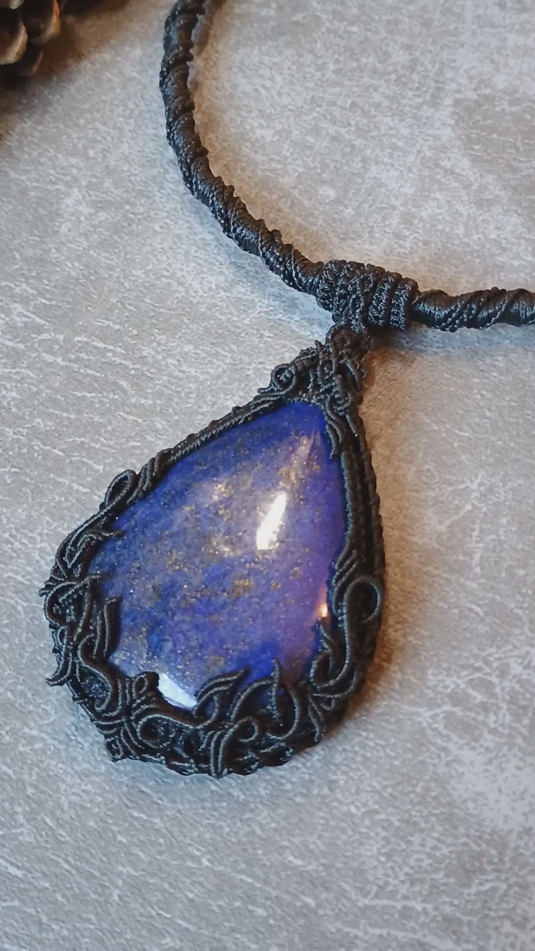 The Magic Blue | Lapis Lazuli Macrame Necklace | Freehand Design | Pendant size approx 7.4 cm