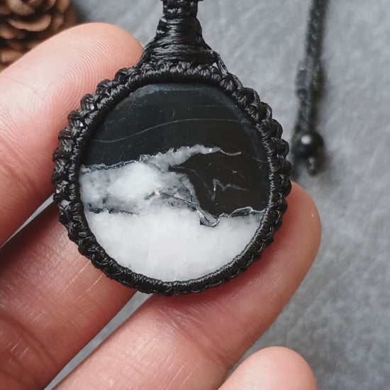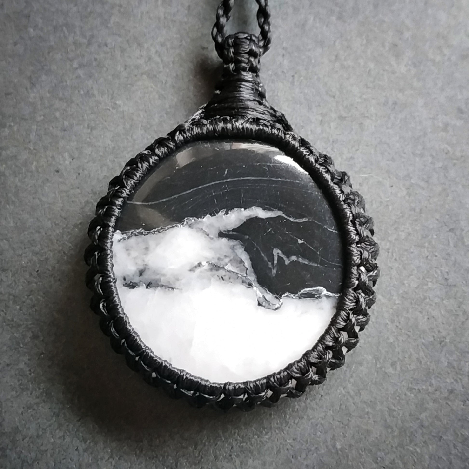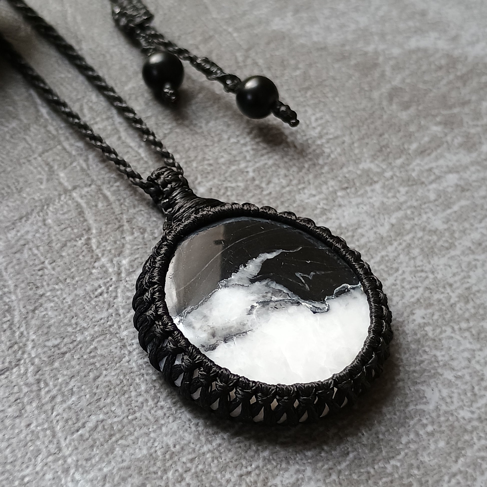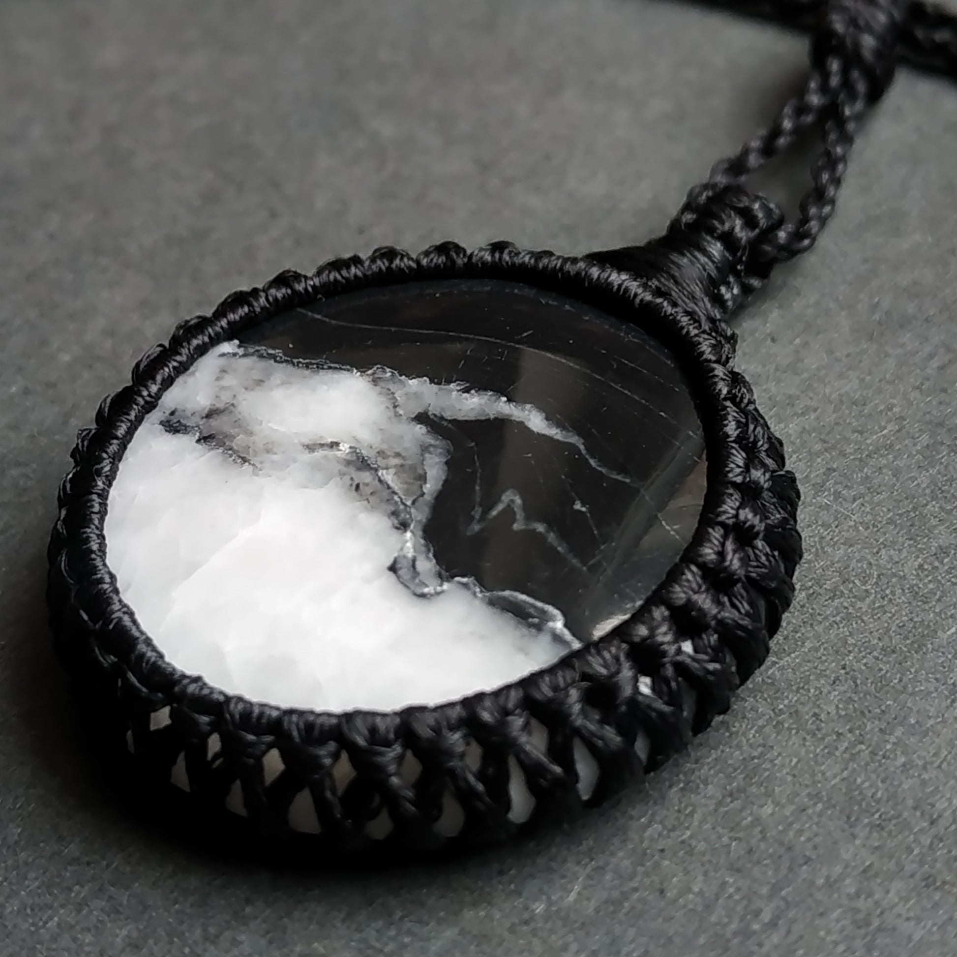 White Buffalo Macrame Necklace | Pendant size approx 4.1 cm