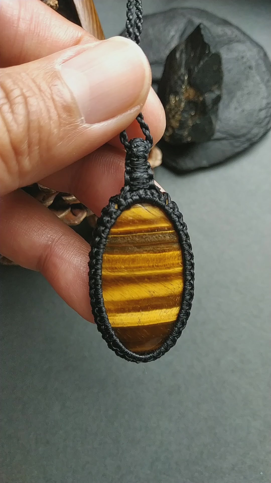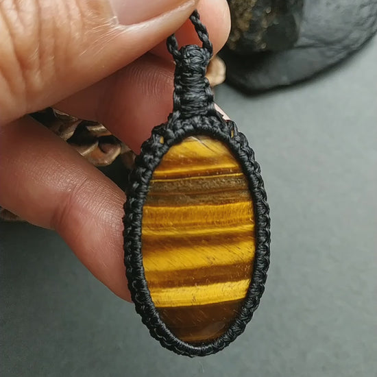 Yellow Tiger's Eye Macrame Necklace | Pendant size approx 5 cm